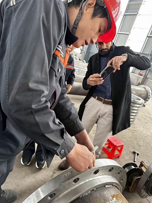 中東客戶深度考察華洋鋼管,驗收450噸鋼管焊接法蘭訂單